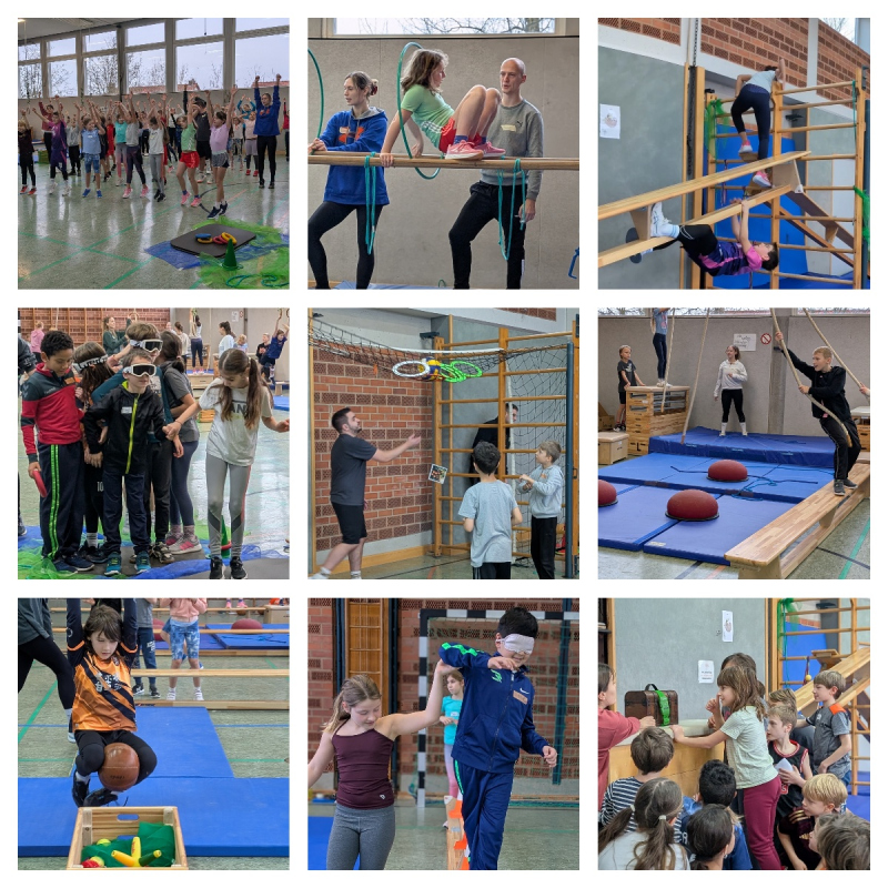 Nach einem dschungelgemäßen Aufwärmen verteilten sich die Kinder bunt gemischt an die einzelnen Stationen, um die dort gestellten Bewegungsaufgaben auszuführen.